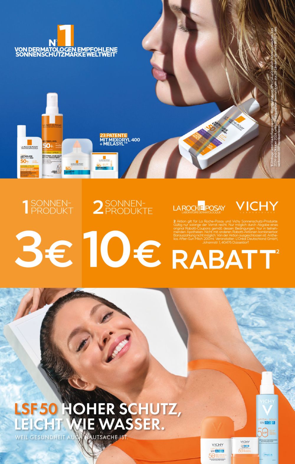 3 € Rabatt beim Kauf eines Sonnenprodukts von La Roche-Posay und 10 € Rabatt beim Kauf von zwei Sonnenprodukten